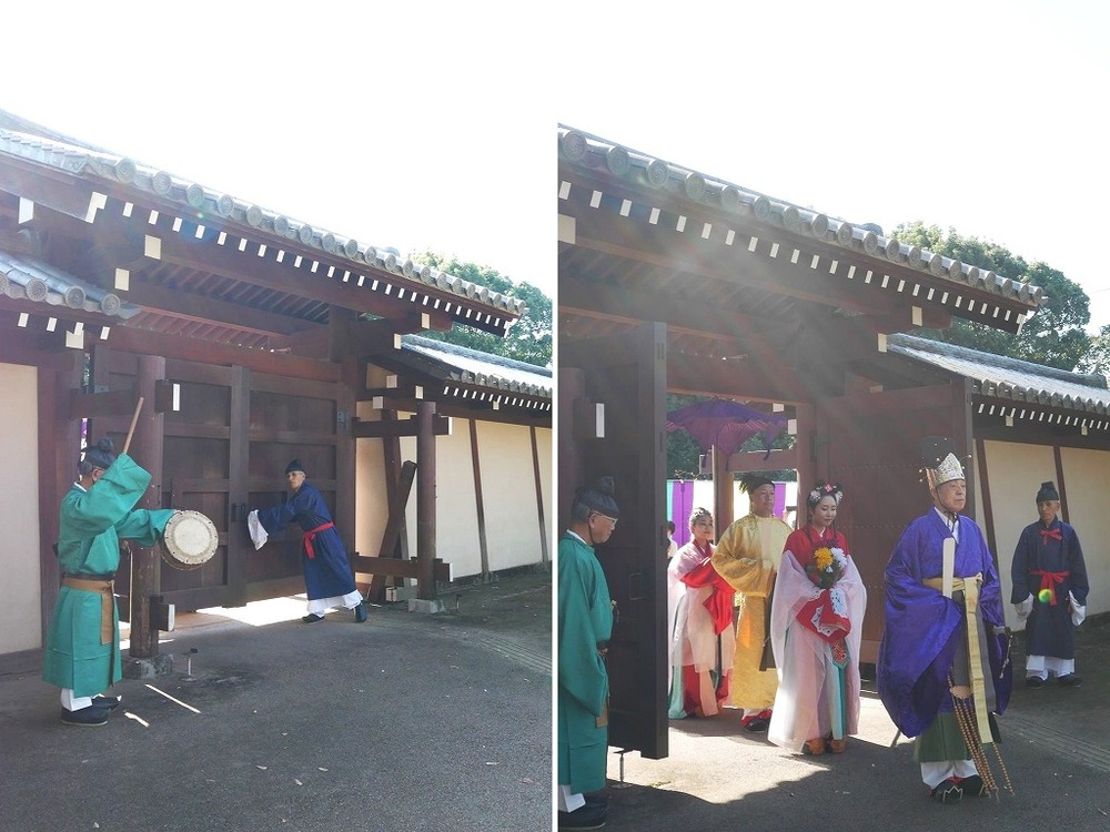 After the Kemari performance, it was time for the Kyokusui Banquet. At 1:00 p.m., the sound of drums sounded to signal the opening of the gates.