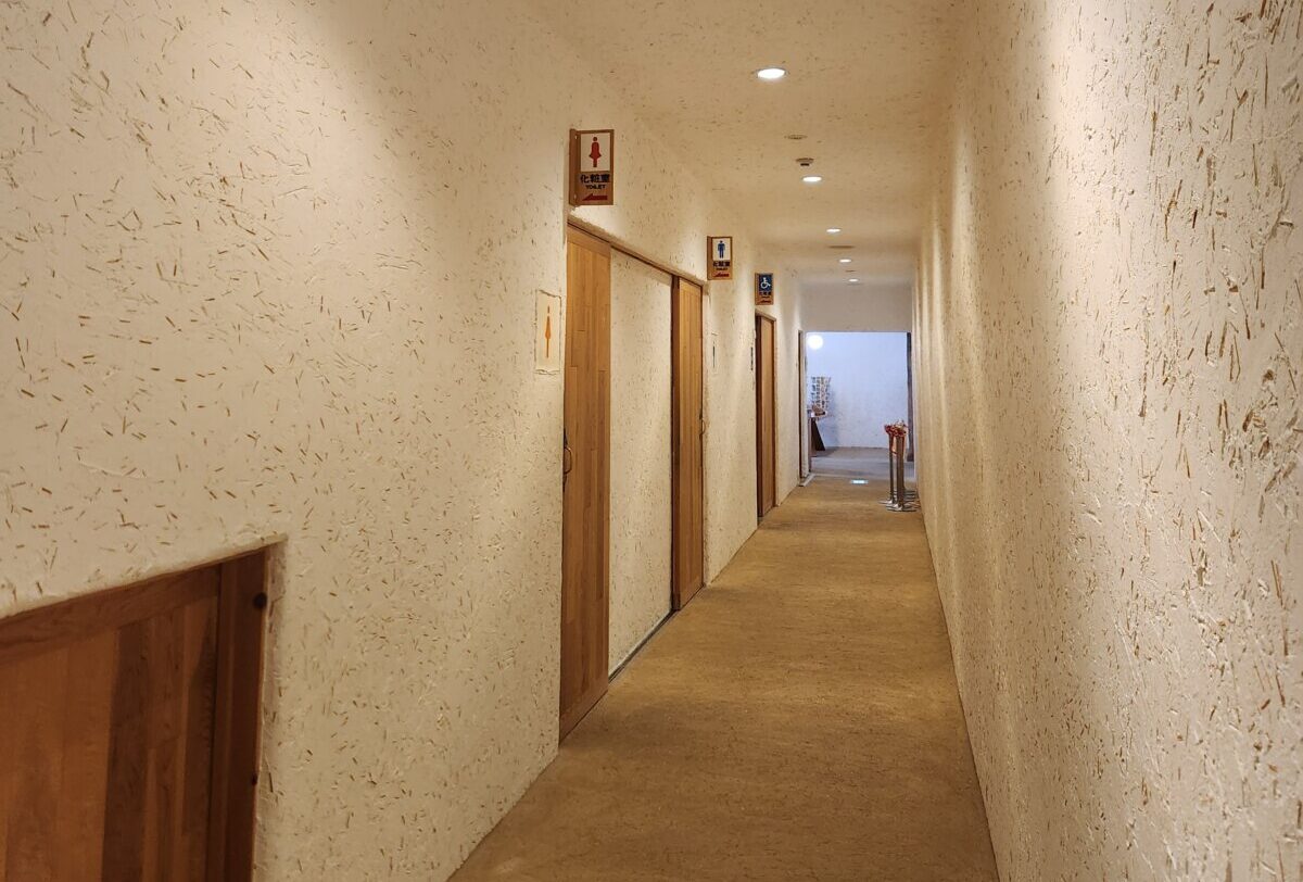 The building makes extensive use of natural materials, such as local Tenryu cedar and plaster walls, giving both the exterior and interior a warm, inviting atmosphere.