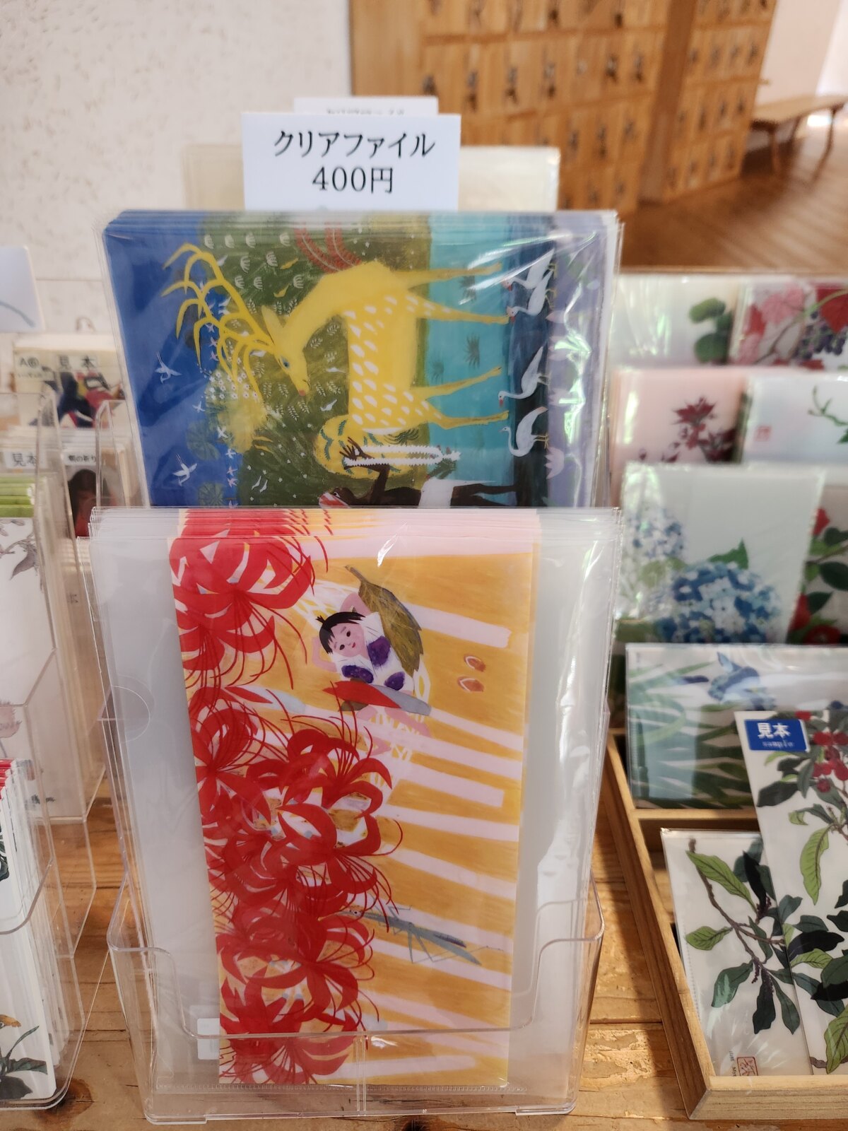 Recommended items at the gift shop: Postcards, clear files, tote bags, and more