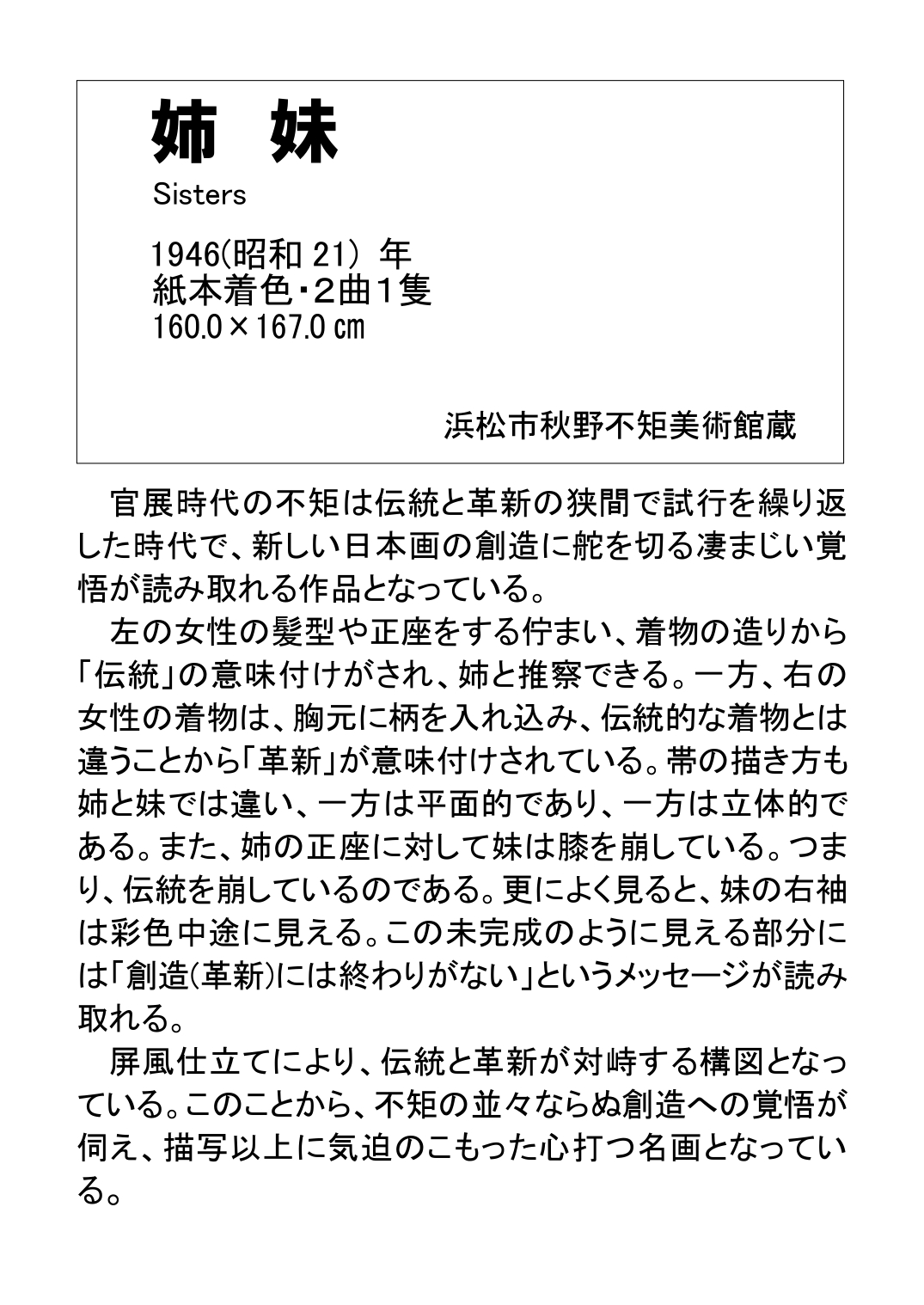 Here is the curator Mr. Eiji Suzuki’s commentary panel for Akino Fuku’s representative work, “Sisters” (1946).