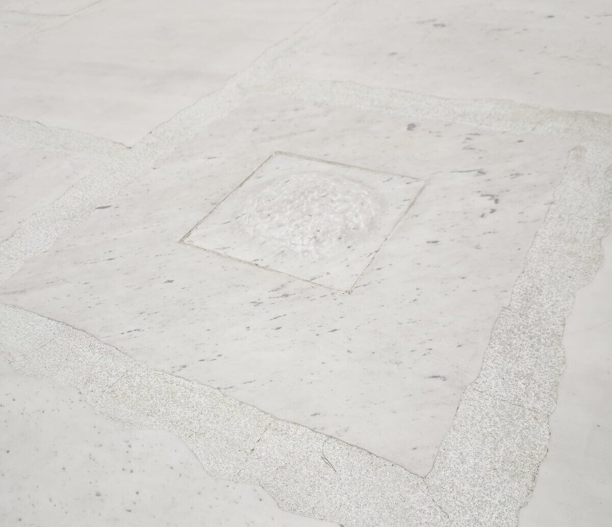 In the center of the exhibition room, there is a spot often referred to as a “power spot,” where a semicircular structure is built into the floor.
