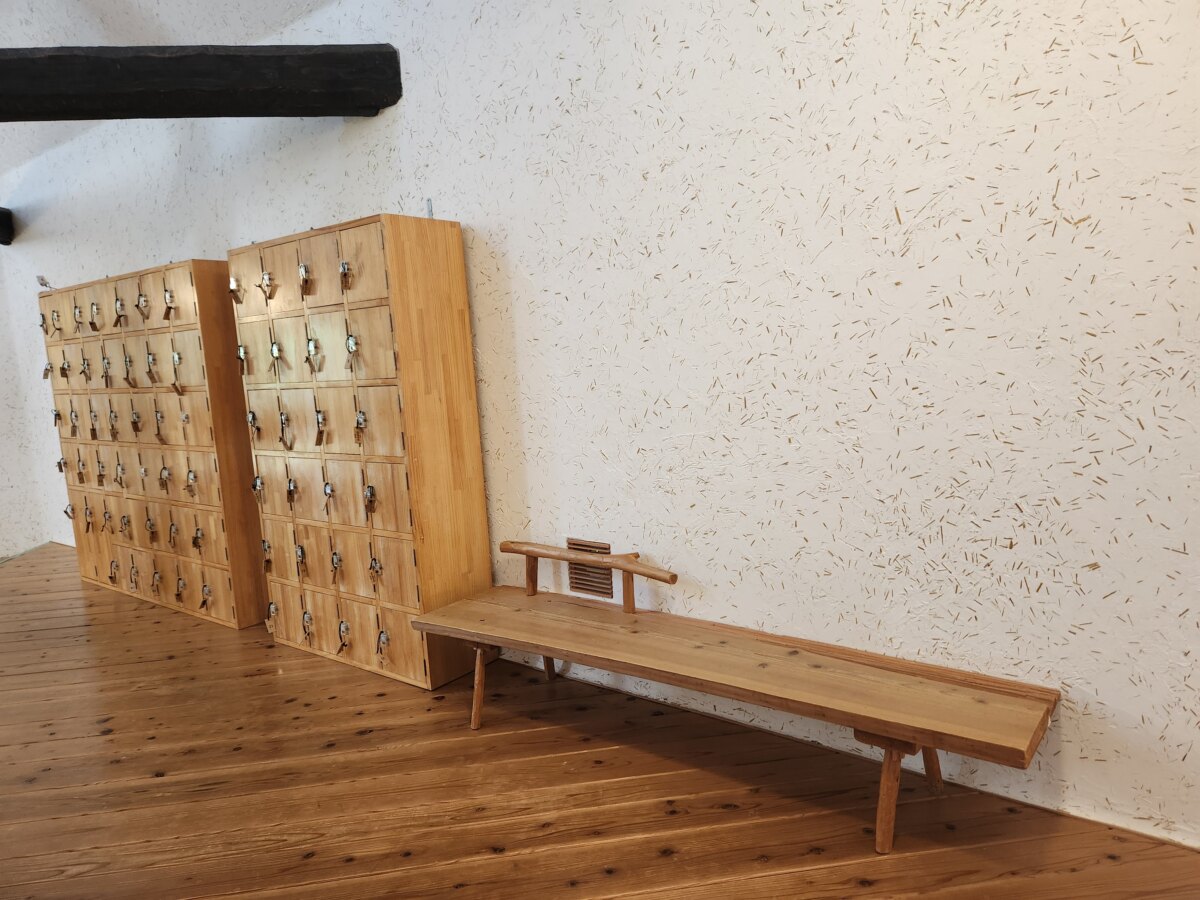 The roof and exterior walls are made of copper panels, and local children from Tenryu participated in shaping them by hand under Fujimori’s guidance.