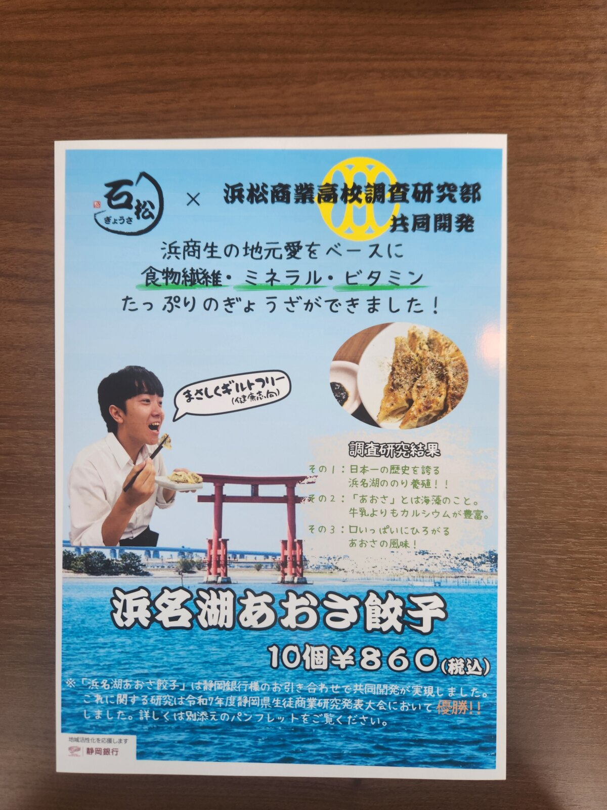 Available from October 25, 2025, this special gyoza was developed jointly by Ishimatsu Gyoza and the Research Club of Hamamatsu Commercial High School.