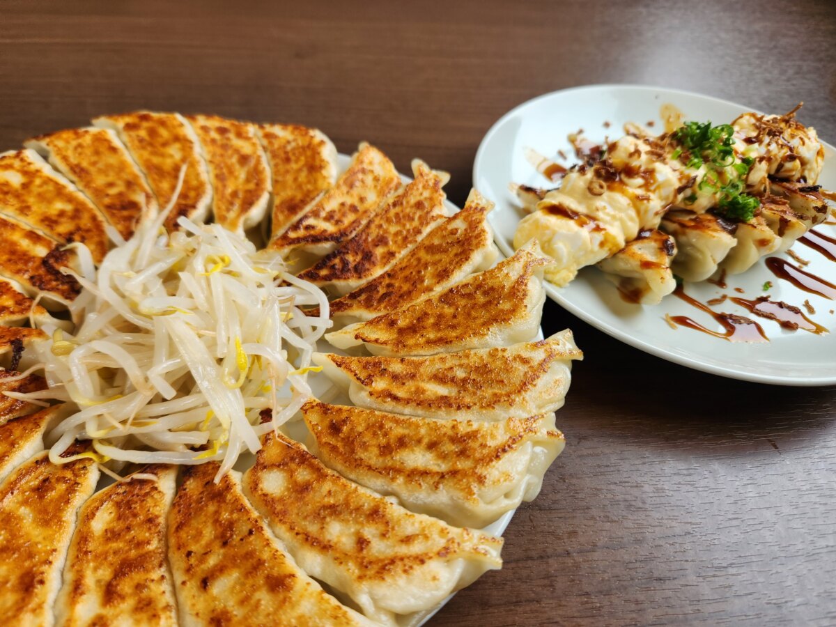 In addition to their classic pan-fried gyoza, the menu also features fried gyoza, boiled gyoza, and popular side dishes such as miso horumon, Chinese noodles, and fried rice.