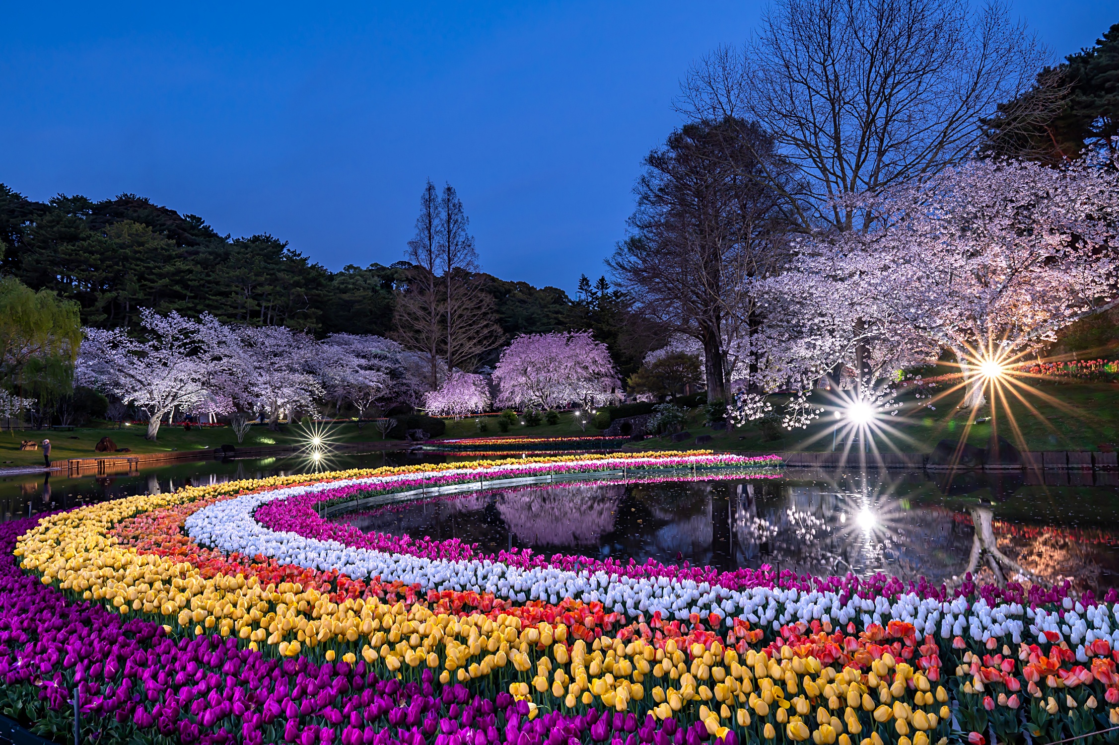 Hamamatsu Flower Park, which boasts an area of approximately 300,000 m2 on the shores of Lake Hamana, is a soothing botanical garden where approximately 3,000 types of flowers bloom in every season. There are plenty of attractions perfect for families and couples, such as the Cherry Blossom and Tulip Garden, the large greenhouse “Crystal Palace,” a huge fountain show, and a flower train that lets you travel among the flowers!