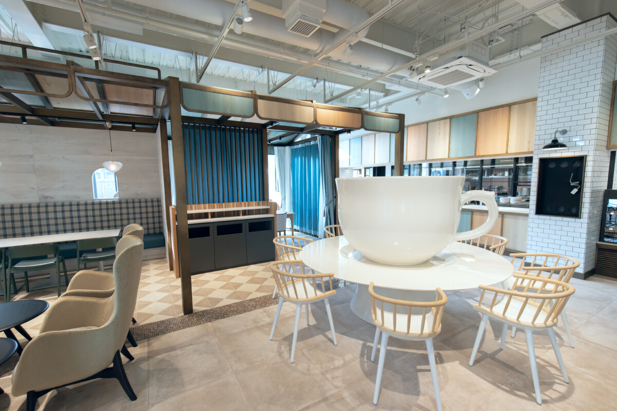 컵의 받침(소서)은 카운터석으로 되어 있어, 이곳에서 식사도 즐길 수 있습니다.
