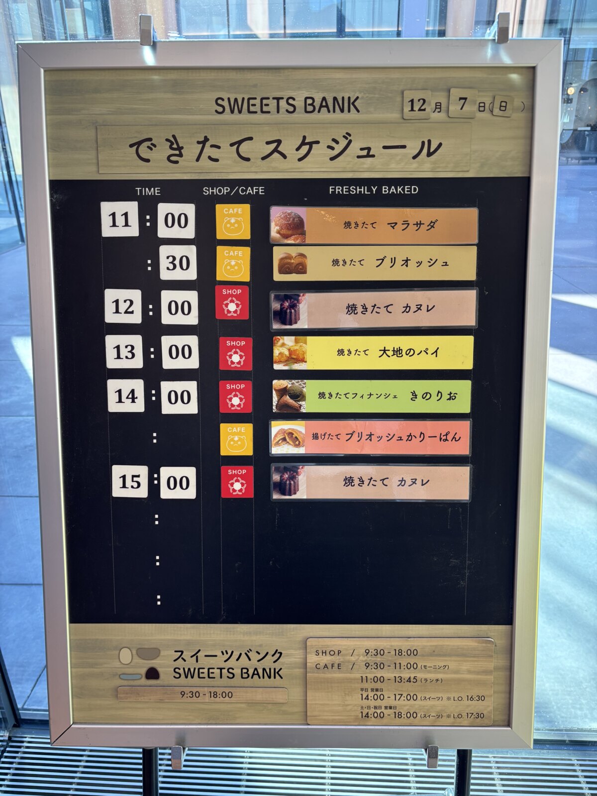 SWEETS BANK에서는 오전 11시 이후, 1시간마다 갓 구운 빵이나 스위츠가 준비됩니다.