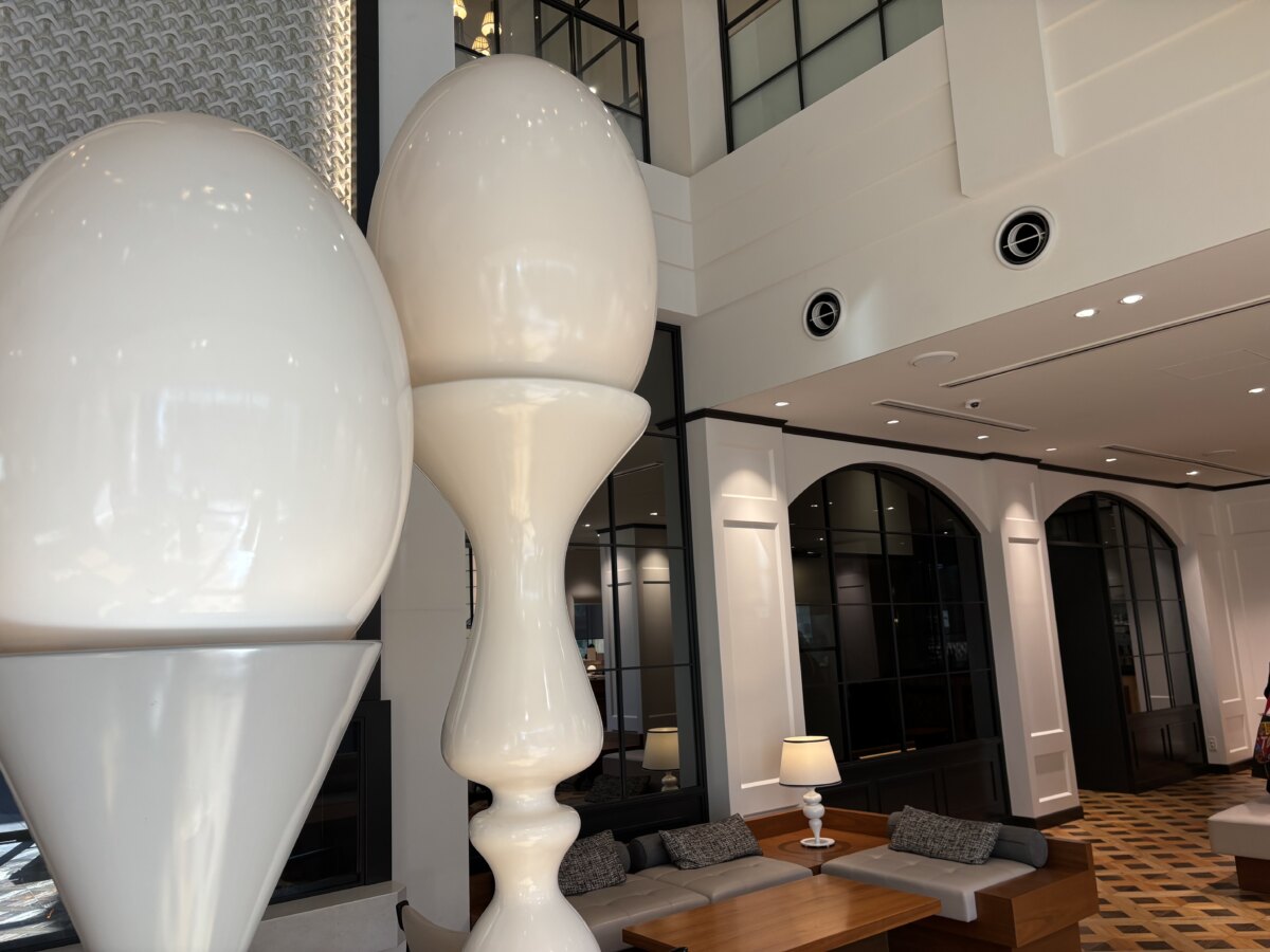 시설 안으로 한 발 들어서면, 모던한 공간 속에 거대한 에그 스탠드가 모습을 드러냅니다.
