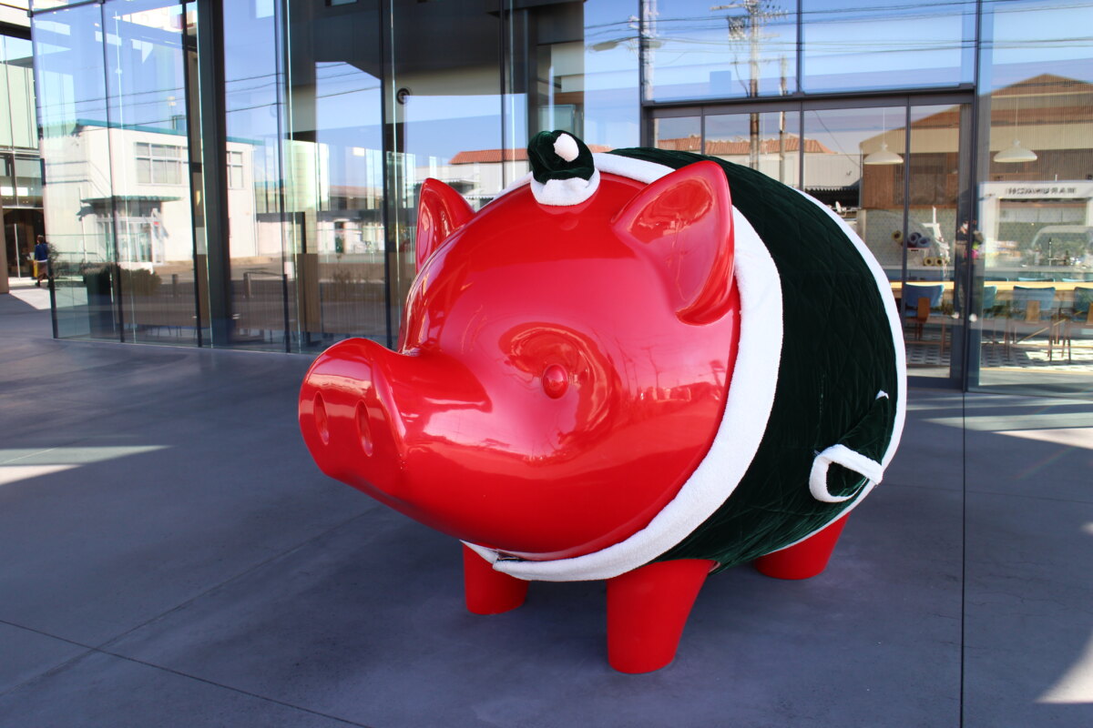 그 근처에서는 하마마츠 이와타 신용금고 모리타 지점·히가시이바 지점의 마스코트 ‘피기(Piggy)’도 만날 수 있습니다.