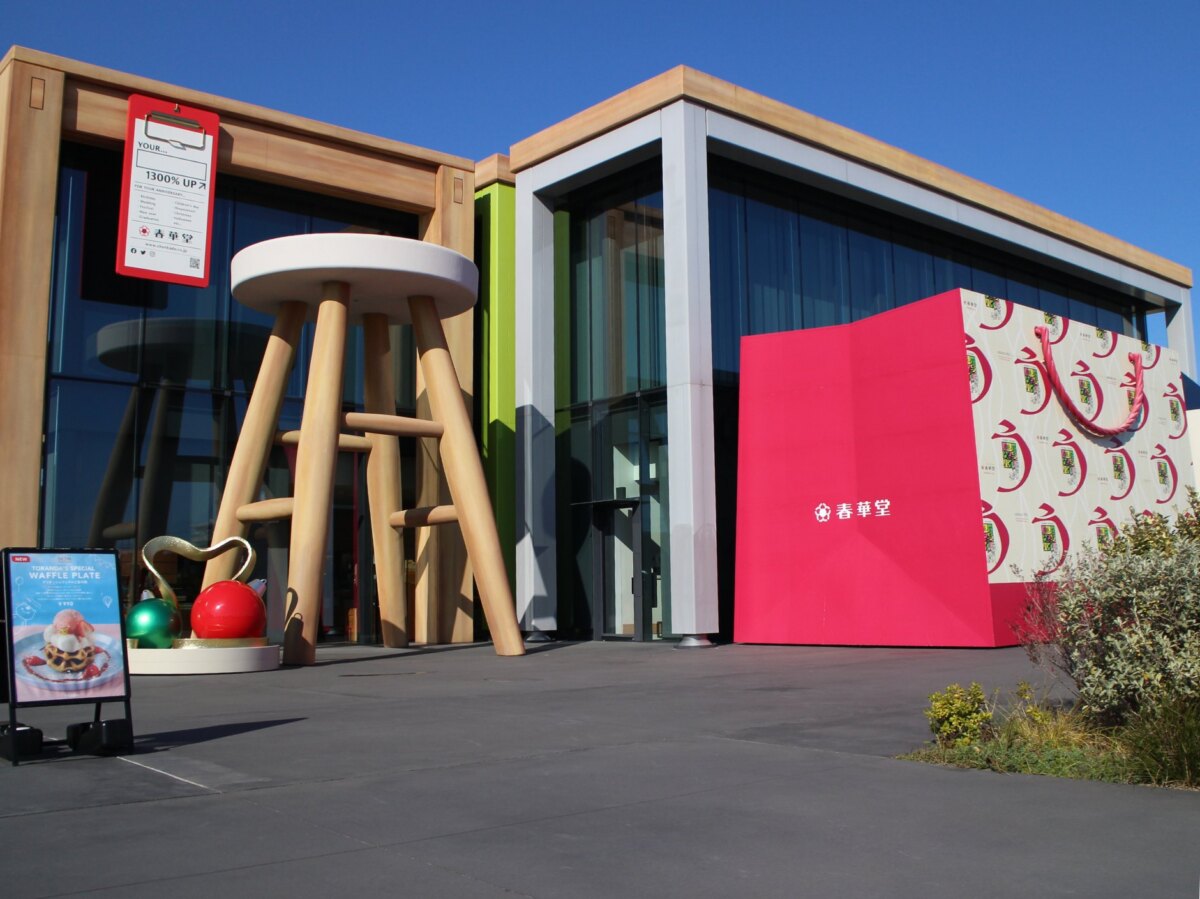 2021년 4월, 하마마츠시에 탄생한 SWEETS BANK. 멀리서도 눈길을 사로잡는 거대한 의자와 테이블은 실제 크기의 무려 13배 스케일!
