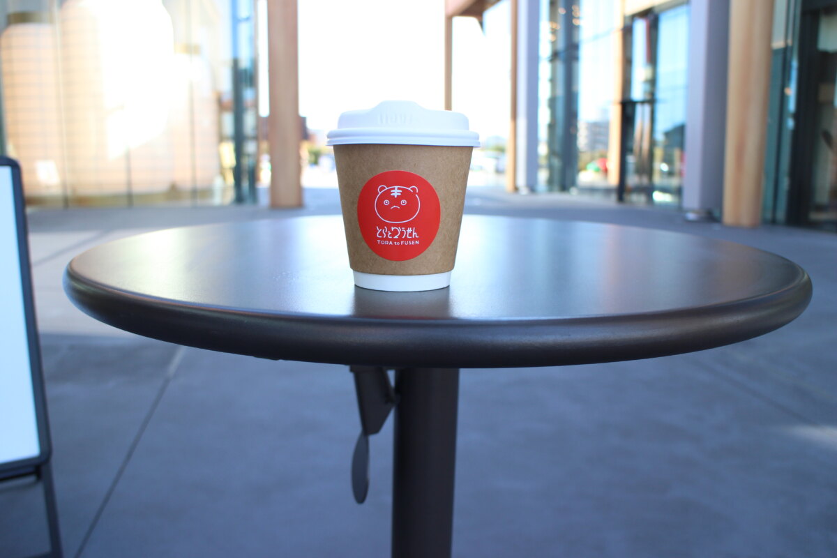 그 뒤쪽, 카페 & 베이커리 토라토후센에는 하얀 커피포트와 컵이 놓여 있습니다.