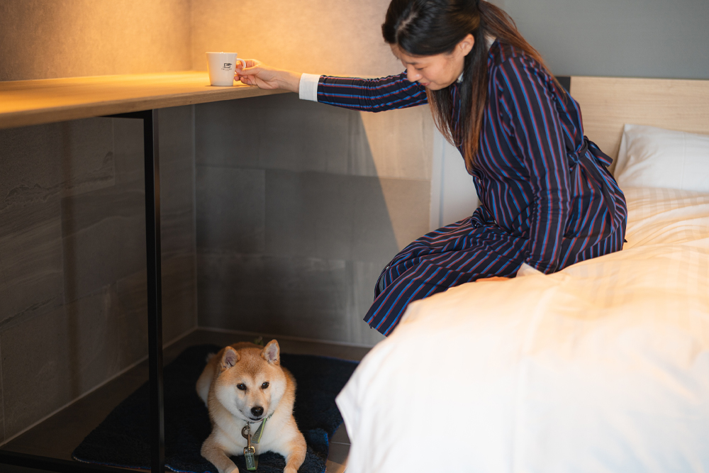 房間配備了狗的設施,如皮帶鉤、衛生紙和食物碗,讓主人可以安心享受他們的旅行。