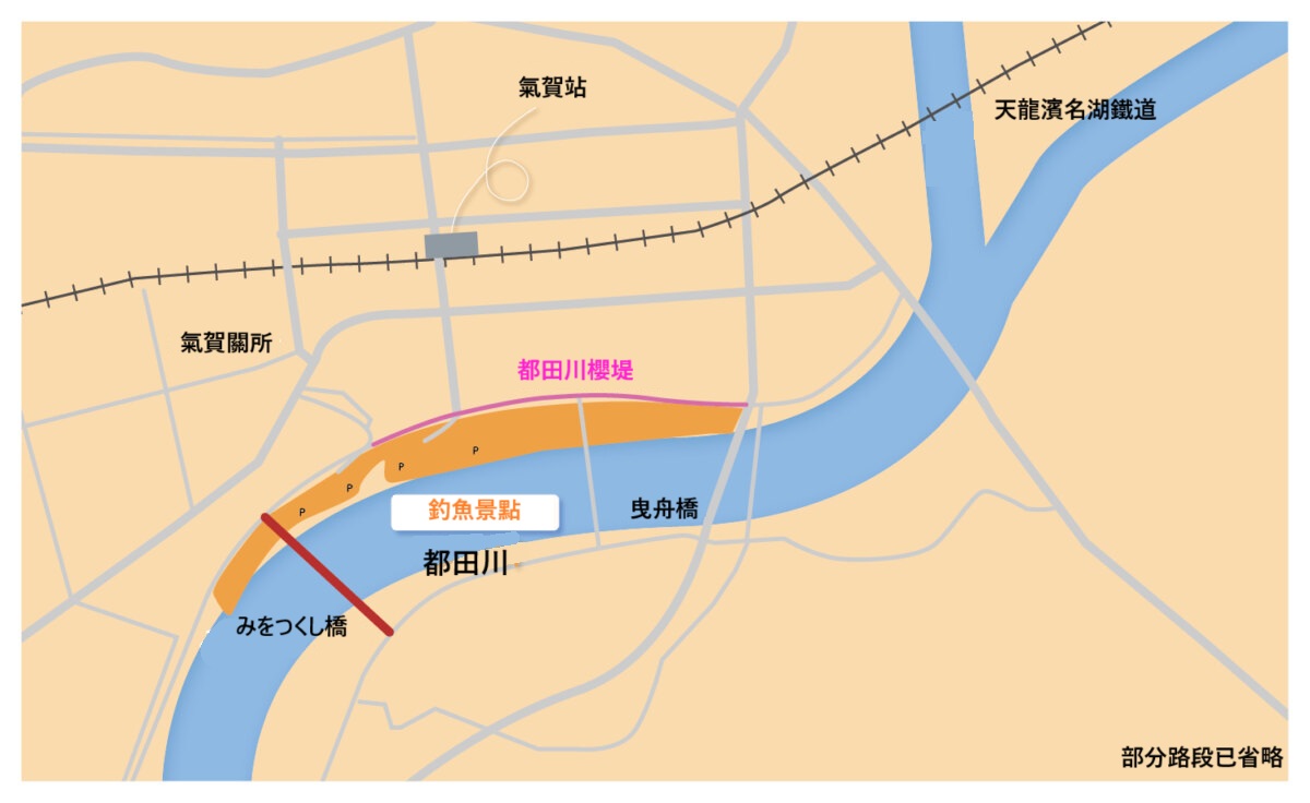 「みおつくし(Miotsukushi)橋」與「曳舟(Hikifune)橋」之間交通便利,並設有碎石停車位,對釣客來說非常方便。