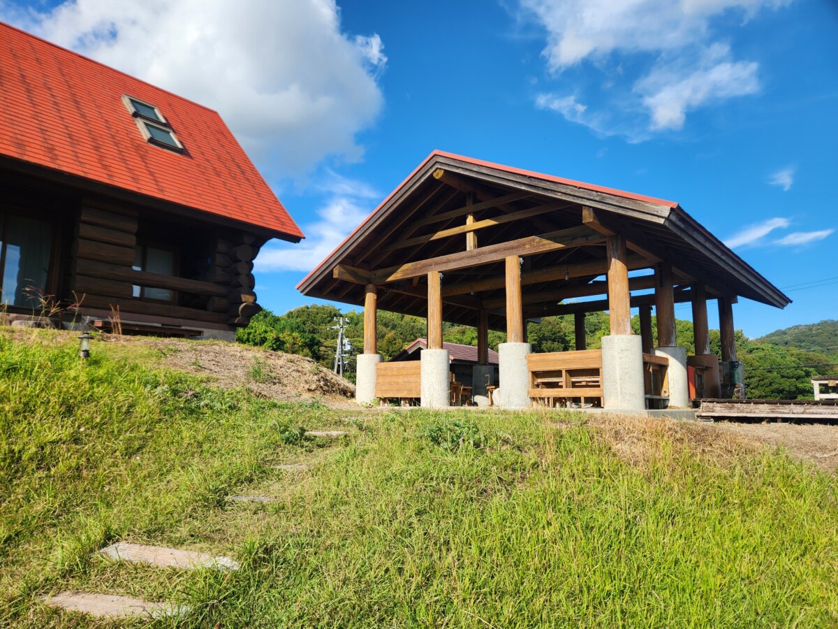 小木屋前方設有可搭設帳篷與天幕的空間,可以在戶外享受烤肉時光,或是在大自然中悠閒放鬆。