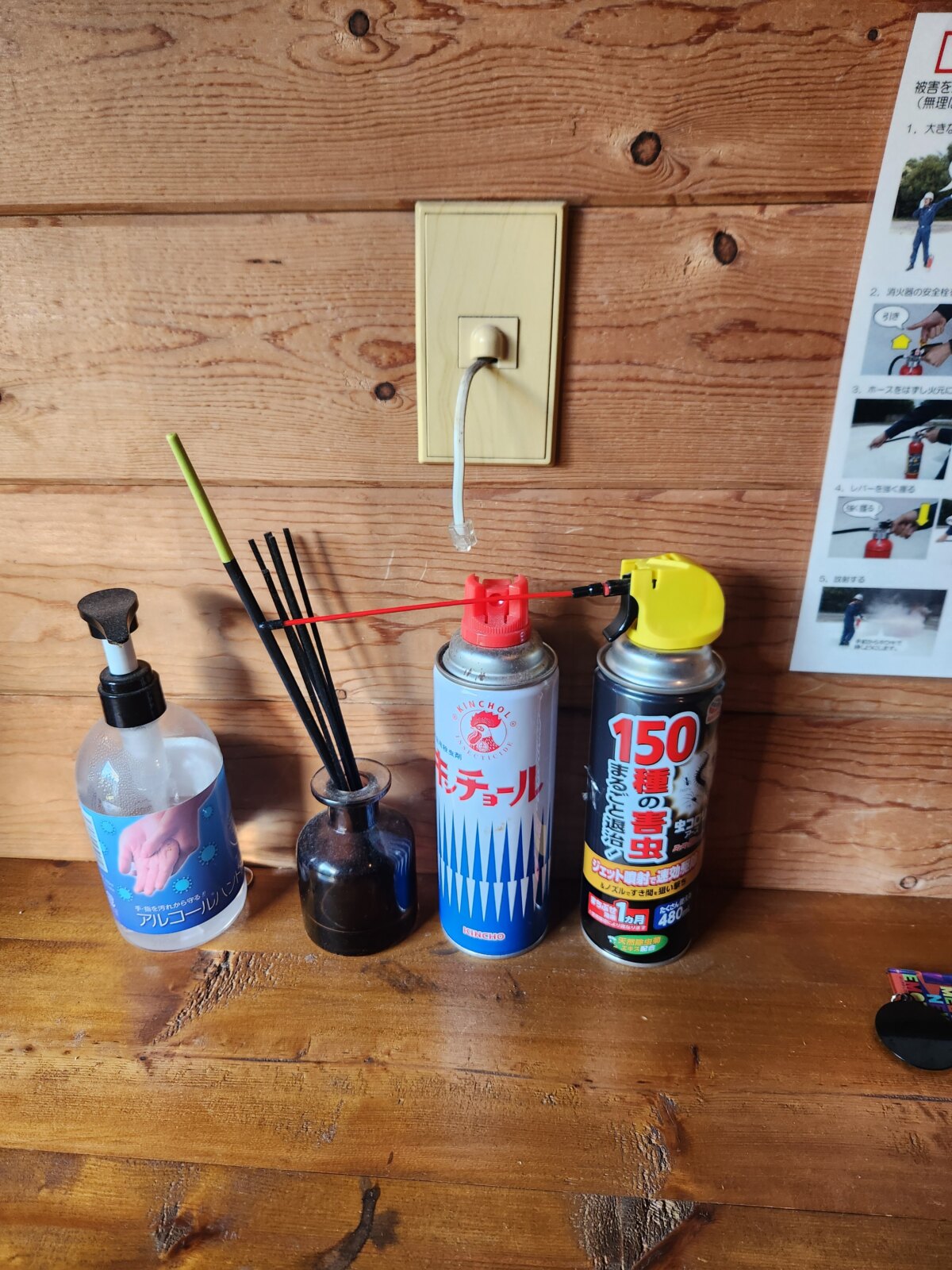 以防萬一出現害蟲,小木屋的入口處備有殺蟲劑。
