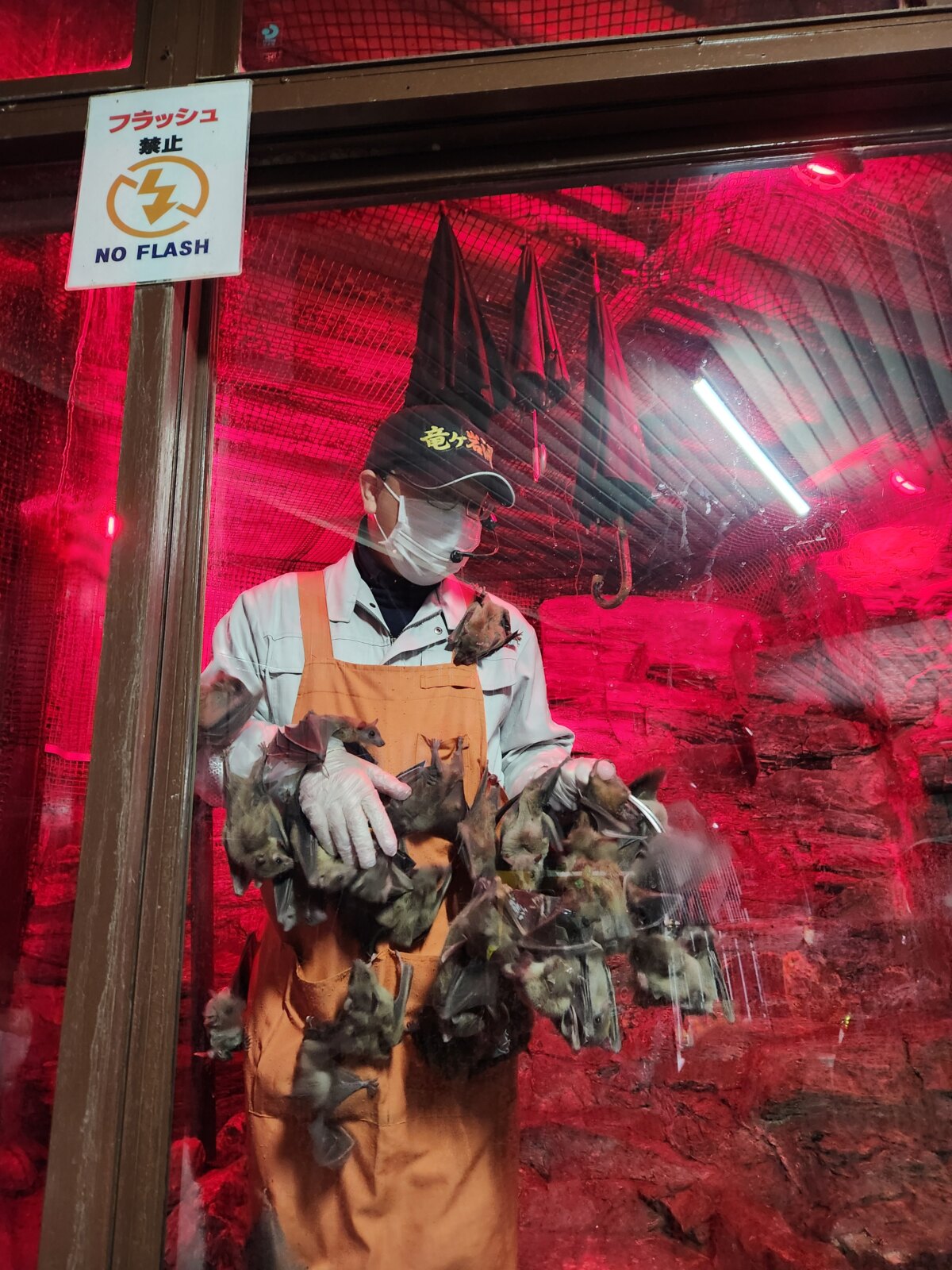在「龍岩洞」入口處設有飼育設施,可以看到牠們在室內倒掛休息,或是展翅飛翔的模樣。