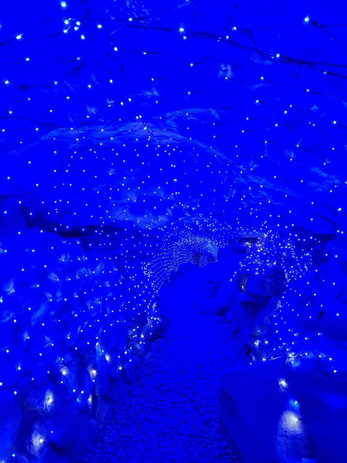 約20公尺長的洞內被染上美麗的藍色,被稱為「燈飾土螢」,免費對外開放。