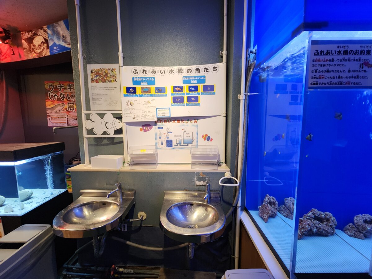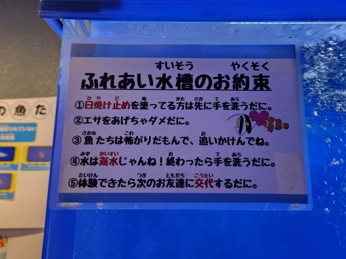 觸摸體驗水槽可以實際接觸魚類,還有許多以小學生為對象的活動,是一個適合全家大小同樂的設施。