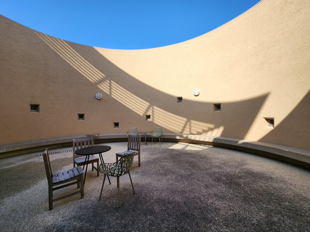 休息區:有(2樓設有環繞一圈長椅的圓形休息空間,可飲食;3樓也設有休息區)