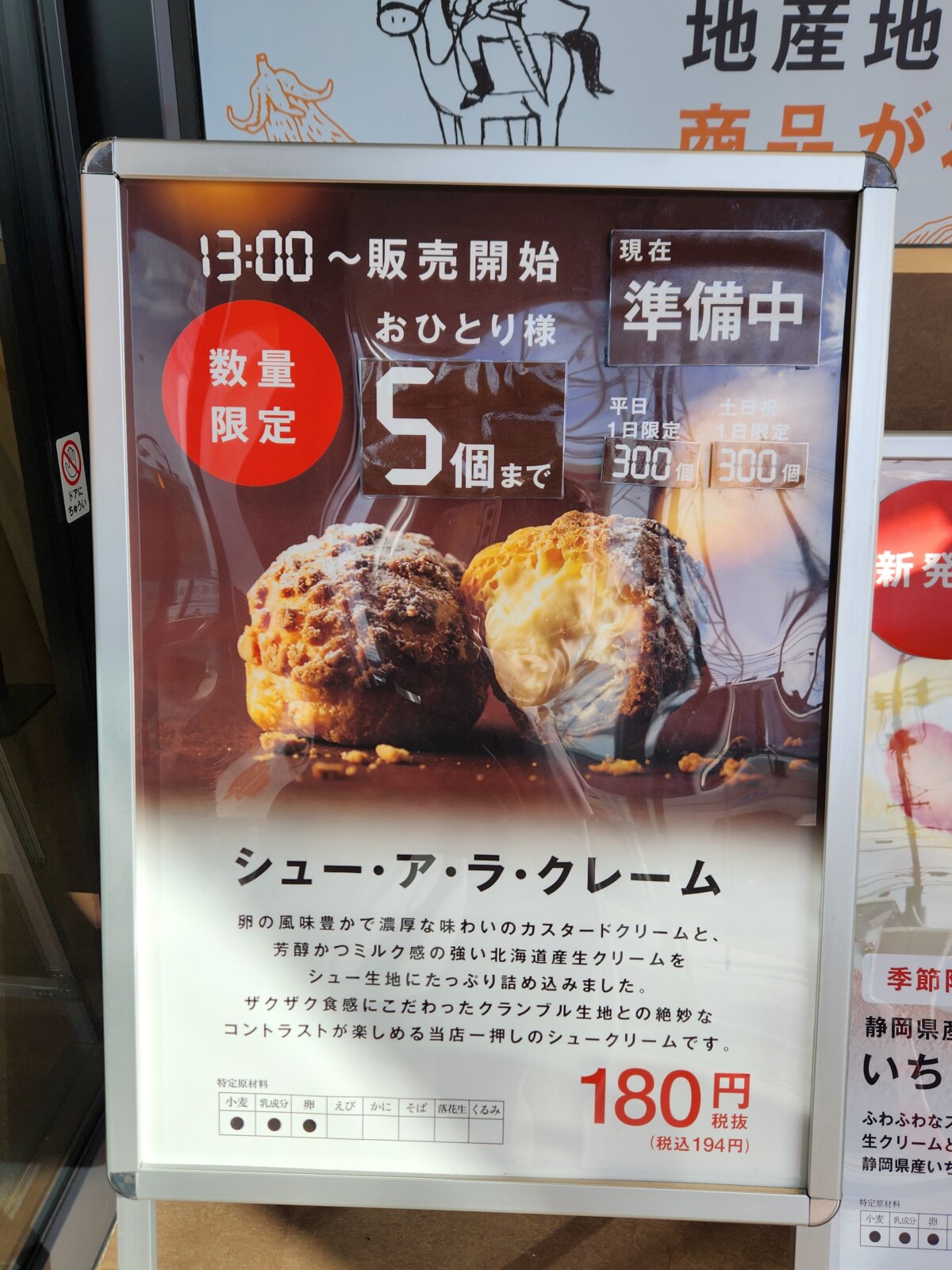 這個專區提供因工廠直營才能實現的美味商品,並以划算價格販售,還會擺放數量限定的シューアラクレーム(泡芙)以及依季節推出的新商品。